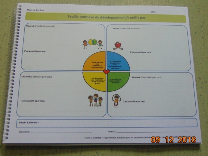 Les rencontres individuelles se font deux autres fois durant l’année avec les parents. La première serait en janvier et la deuxième en mai. Mais pour toutes raisons valables ces dates peuvent changer et une communication à cet effet sera faite aux parents. C’est une occasion importante pour le partage d’information sur le développement des enfants. Les parents recevront une fiche synthèse découlant de toutes les observations faites sur les cinq dimensions globales de l’enfant. Le document les grilles de référence du développement de la naissance à 5 ans de CASIOPE est privilégié durant cette rencontre.